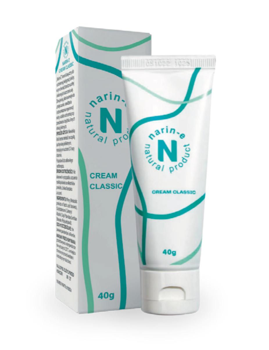 Zastosowanie: Krem Narin-E Cream Classic jest przeznaczony do pielęgnacji skóry. Może być stosowany na skórę z trądzikiem, na suchą i podrażnioną skórę nieuszkodzoną skórę oraz na skórę po poparzeniach i obrzękach. Zapobiega powstawaniu rozstępów. Jest idealny dla osób ze skłonnościami do alergii, oferując nawilżenie i poprawiając naturalną regenerację skóry.