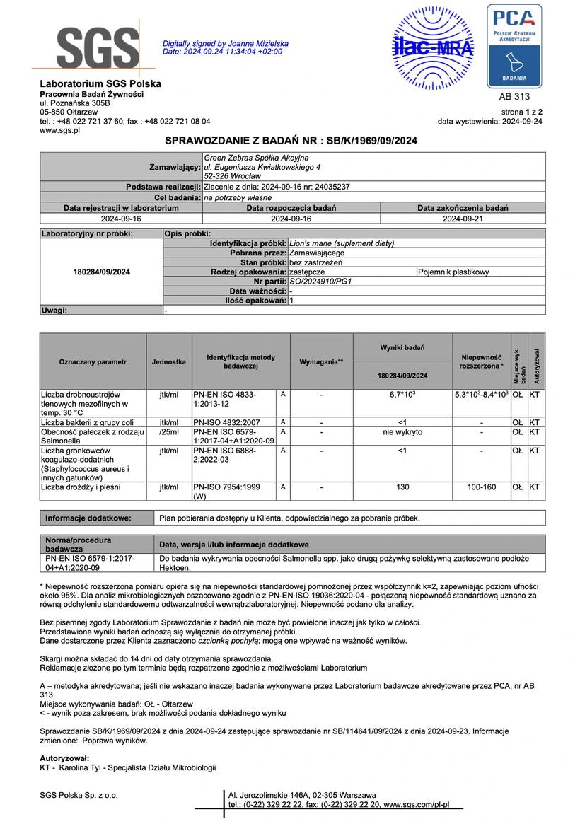 • Wieczorem: Reishi, Lion’s Mane